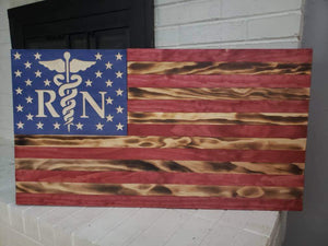 36" American Flag CNC Wooden Flag Registered Nurse Caduceus
